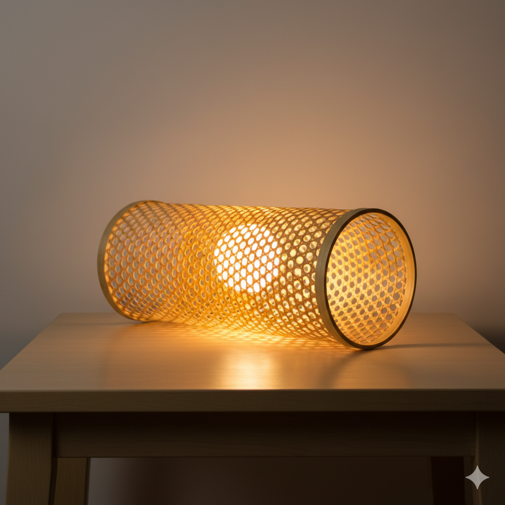 Enhance your interiors with the natural warmth and elegance of the Bamboo Cylindrical Starnet Pendant Lamp. Handcrafted by skilled artisans, this stunning bamboo hanging lamp features a woven starnet pattern that casts a soft, soothing glow — perfect for creating a cozy, inviting atmosphere in your home, café, or studio.