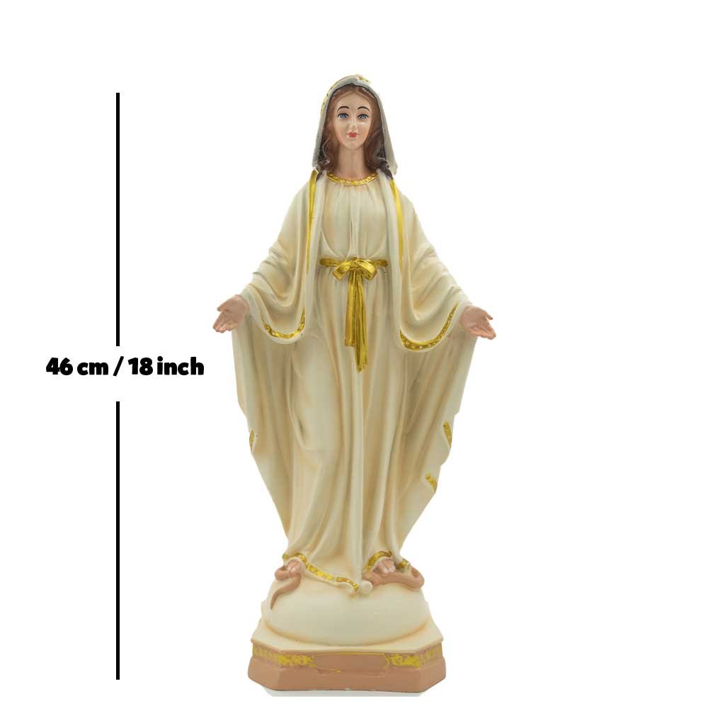 Bring divine grace into your home with the beautifully crafted Immaculate Mary (Mother Mary) Fiber Statue. Standing 18 inches (46 cm / 1.5 ft) tall, this finely detailed statue is made from durable, high-quality fiber material — ideal for home altars, churches, or gifting to loved ones.