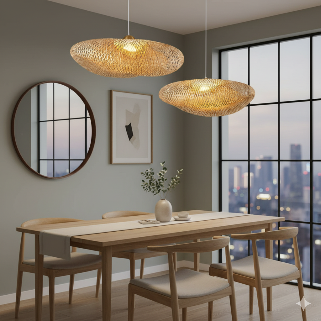 Expertly handcrafted by skilled artisans, this pendant features a curved, sculptural S-shape and a woven bamboo pattern, creating a warm, organic glow that complements both contemporary and rustic interiors. Perfect for homes, restaurants, cafés, and offices, this eco-friendly lamp blends modern design with traditional bamboo craftsmanship.